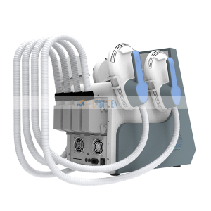 By using HI-EMT( high energy focused electromagnetic wave) technology to expand and contract muscles, limit training, and deep remodeling of muscle internal structure, That is, the growth of myofibrils (muscl eenlargement) and the production of new protein chains and muscle fibers (muscle hyperplasia) to train and increase muscle density and volume. HI-EMT 100% limit muscle contraction of the technology can lead to a large amount of fat decomposition, fatty acids from the decomposition of triglyceride outflow, a large amount of accumulation in adipocytes. Fat acidity is too high, fat cells apoptosis, in a few weeks by the body’s normal metabolism out of the body.